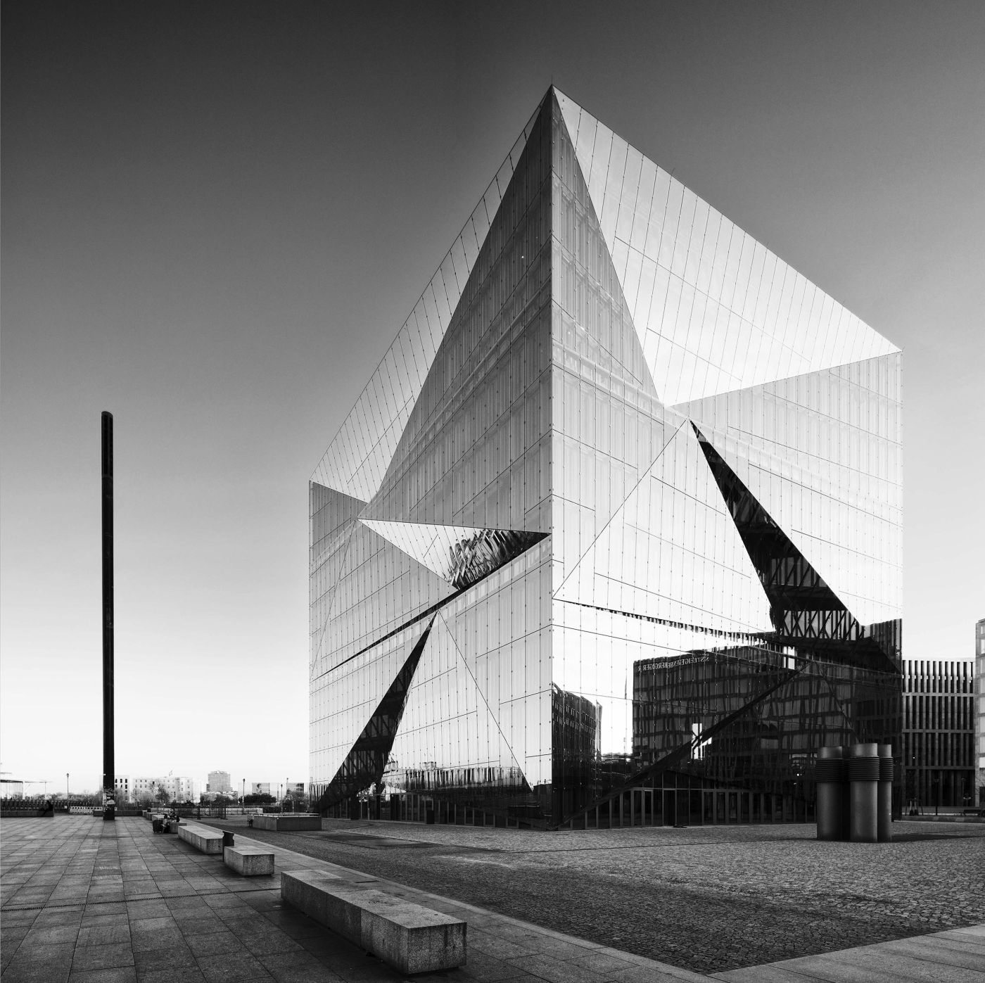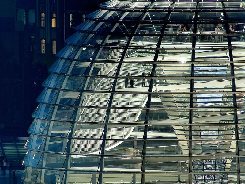 Die Aufnahme der Reichtstagskuppel ist vom Potsdamer Platz aus mit weit über 1000mm Brennweite gemacht, niemand würde das mit eigenen Augen so sehen können. Trotzdem widerspricht das Bild nicht der Wahrnehmung. Das Atrium der DG Bank ist eine extreme Ansammlung seltsamer Formen – und der Blick nach unten in den tiefer gelegenen Veranstaltungsraum mittels eines ebenso extremen Weitwinkel-Objektivs ist dabei kein Widerspruch. Die Spiegelungen im "Cube" geben die sanfte Abendstimmung wieder, die der recht aufgeregte Bau als eine seiner Facetten aufnehmen kann. Der Blick über die Spree zeigt das gleiche Phänomen, die grelle Spiegelung des Sonnenuntergangs verstärkt den Kontrast zur historischen Oberbaumbrücke. Die Ansicht gibt es immer, die Spannung darin kommt jedoch in dem besonderen Augenblick.