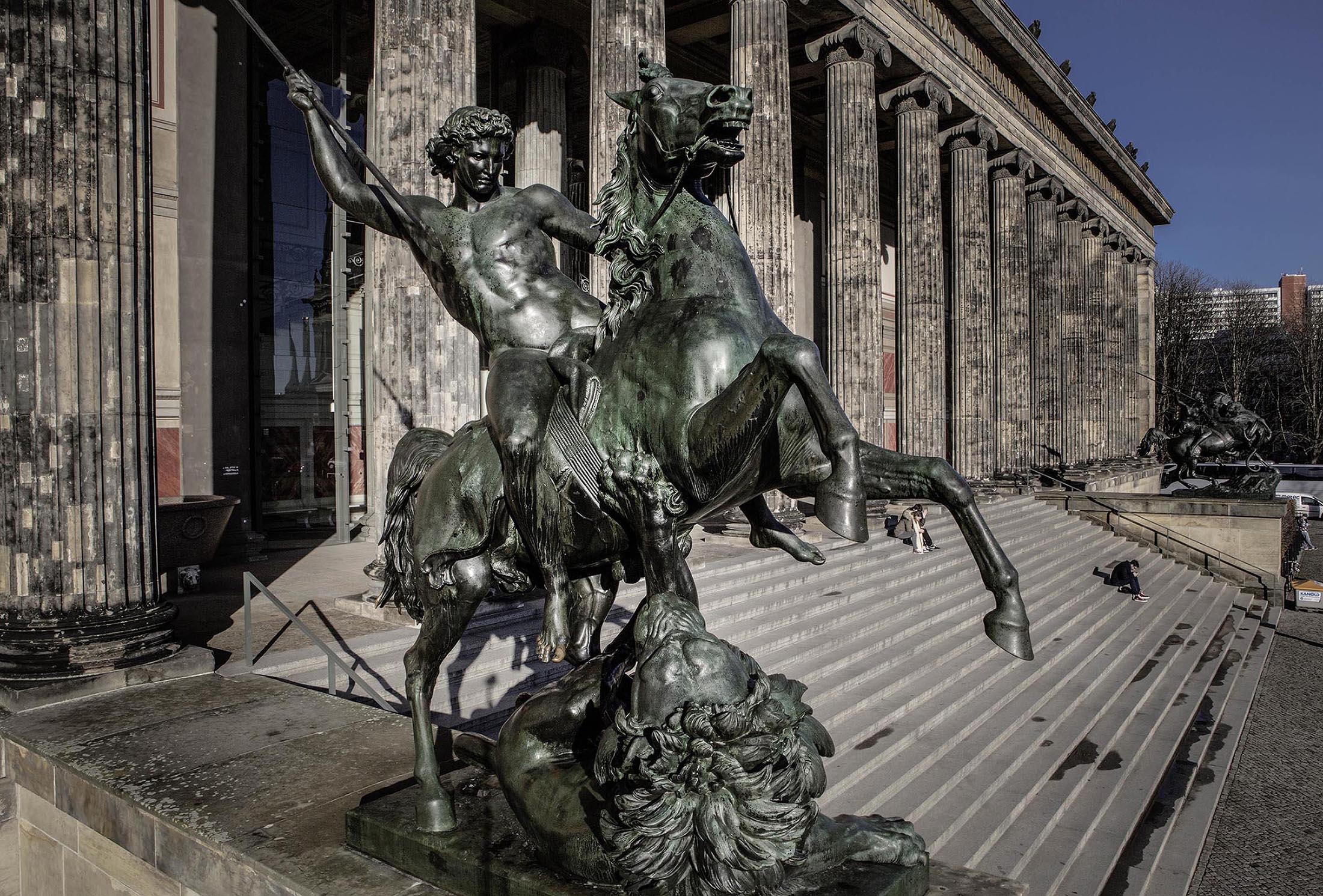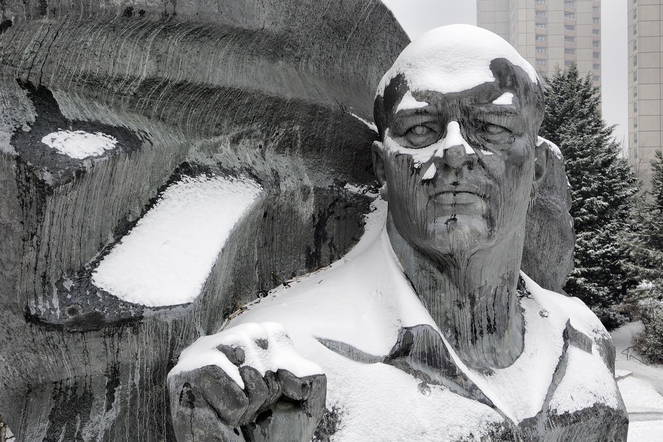 Die erste Möglichkeit dazu ist – wie an anderer Stelle auch – der erhöhte Standpunkt, den ich mit dem Hochstativ einnehmen kann. Dem "Großen König" oder dem alten Kommunisten, die uns beide hoch auf Sockeln thronend ins Stadtbild gestellt wurden, kann man auf Augenhöhe ins Gesicht sehen. Und es entsteht auch eine Aussage zur Qualität der Bildhauerei.